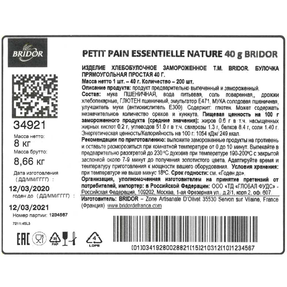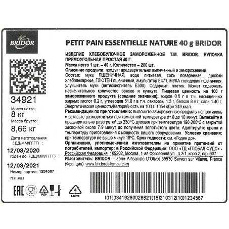 Продукт предварительно выпеченный и замороженный.