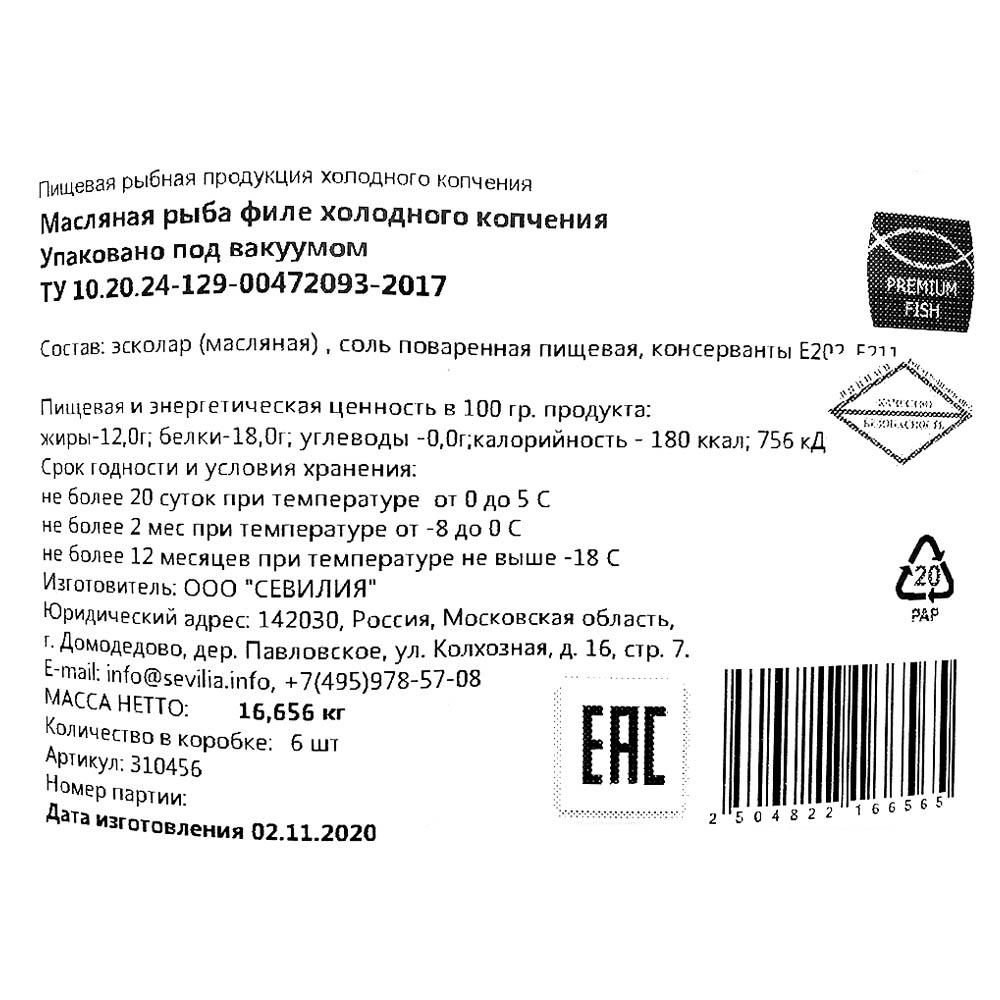 Масляная рыба Эсколар филе х/к на коже~1-2,5кг в/у Premium Fish™ Севилия Россия (КОД 45083) (-18°С)