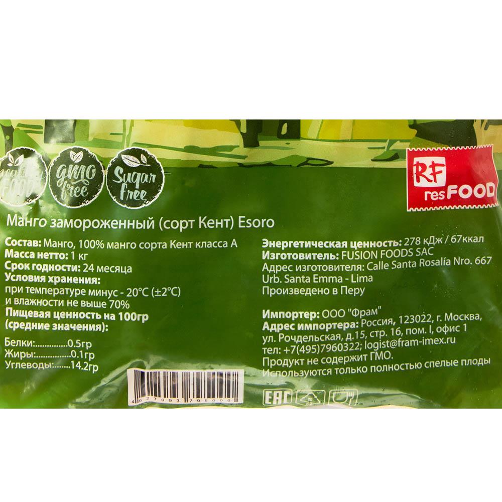 Манго с/м кубики 1кг/пакет Esoro™ Fusion Foods Перу (КОД 46228) (-18°С)