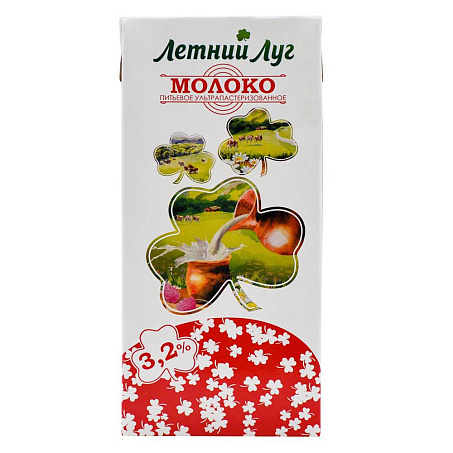 Молоко 3,2% 1л tetra brik Летний Луг™ ГОСТ БЗМЖ UHT Оренбургский МК Россия (КОД 46528) (0°С)