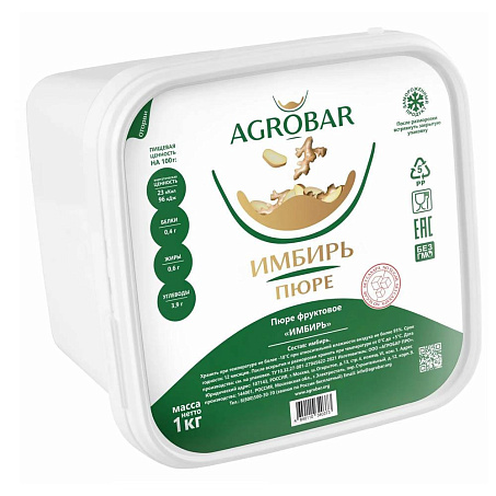 Пюре имбирь без сахара 100% 1кг пл/конт Agrobar™ Россия (КОД 46554) (-18°С)