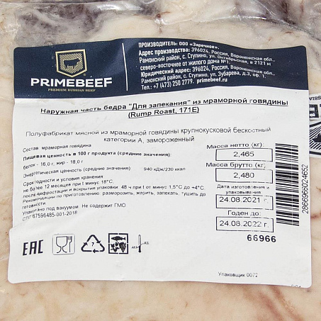 Говядина наружная часть бедра для запекания ~2-3кг в/у (RumpRoast171Е)Primebeef(66906,76560)(КОД 46606)(-18°С)