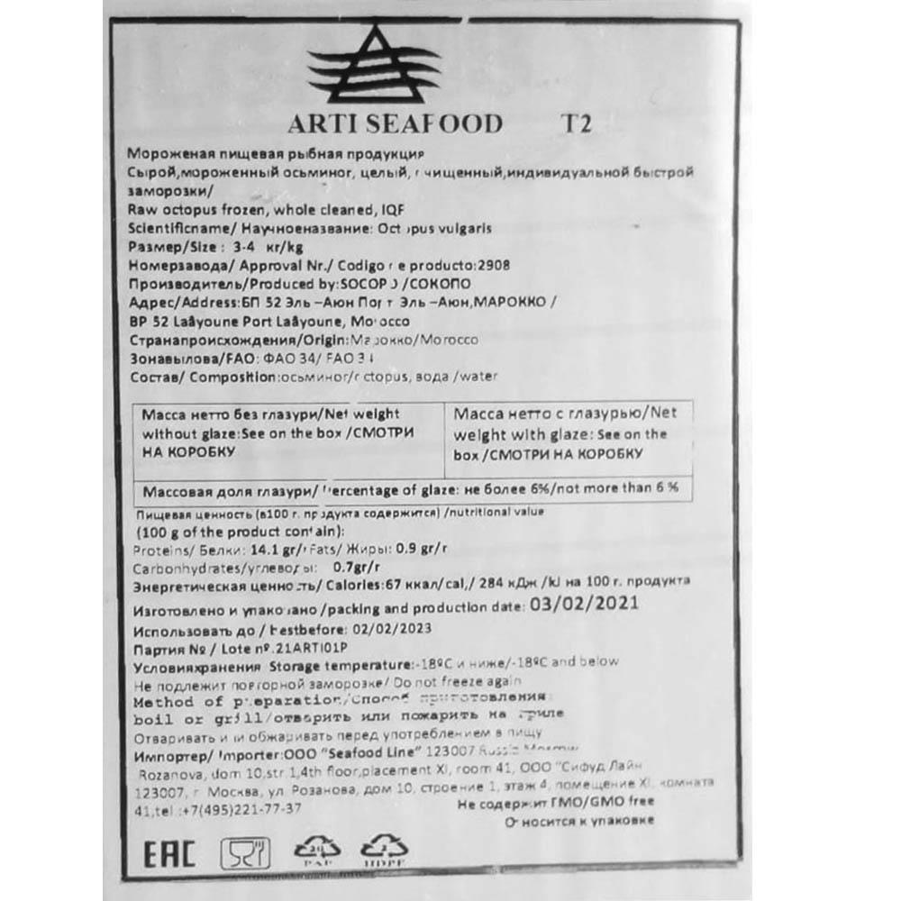 Осьминоги целые 3-4кг Т2 ~12-14кг/кор 8%гл IQF Pesca №3116 Марокко (КОР) (КОД 47144) (-18°С)