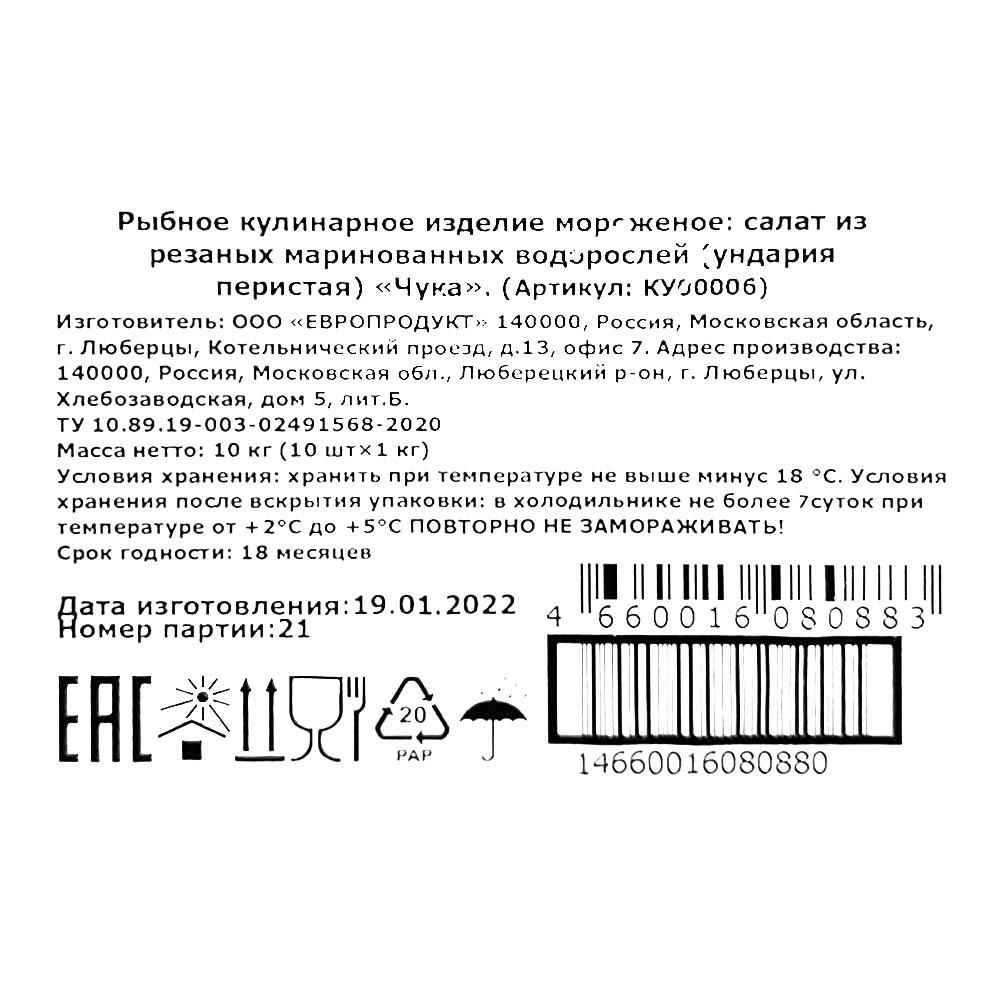 Салат из водорослей "Хияши Вакаме" Чука 1кг (осн.пр.700гр) Tamaki™ Россия (КОД 52423) (-18°С)