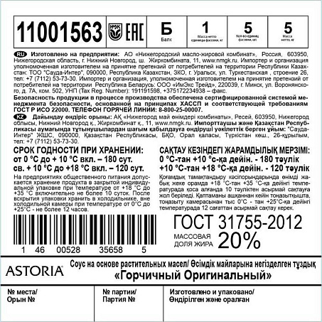 Соус горчичный оригинальный 1кг/балк ГОСТ Astoria™ НМЖК Россия (Q1406014) (КОД 53820) (0°С)