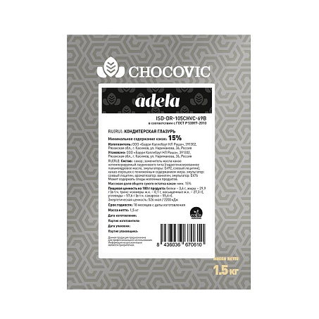 Глазурь капли темные кондит термо1,5кг/уп Adela ISD-DR-105CHVC-69B Chocovic Россия(КОД 53890)(+18°С)
