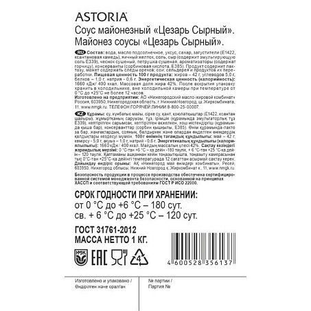 Вода, масло подсолнечное, уксус, сахар, загустители (Е1422, ксантановая камедь), яичный желток, соль, сыр (содержит эмульгирующую соль Е339), чеснок сушеный, петрушка сушеная, ароматизаторы (содержат горчицу), консерванты (сорбиновая кислота, Е385). Продукт содержит лактозу, может содержать следы орехов; сои; сельдерея и продуктов их переработки.