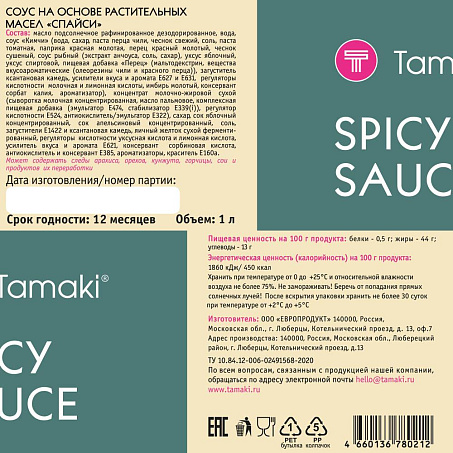 Соус Спайси на основе раст масел 1л пл/бут Tamaki™ Европродукт Россия (КОД 54599) (+18°С)
