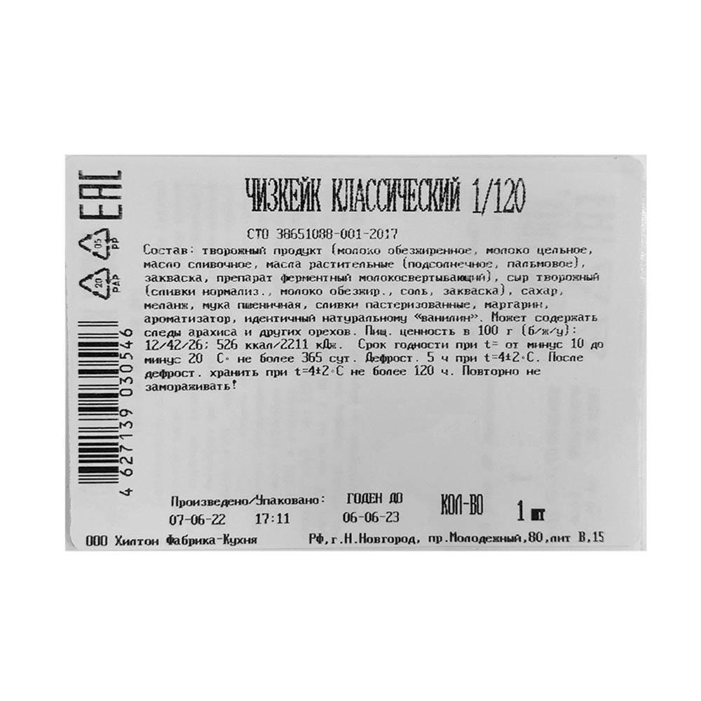 Творожный продукт (молоко обезжиренное, молоко цельное, масло сливочное, масла растительные (подсолнечное, пальмовое), закваска, препарат ферментный молокосвертывающий), сыр творожный (сливки нормализ., молоко обезжир., соль, закваска), сахар, меланж, мука пшеничная, сливки пастеризованные, маргарин, ароматизатор, идентичный натуральному «ванилин». Может содержать следы арахиса и других орехов.