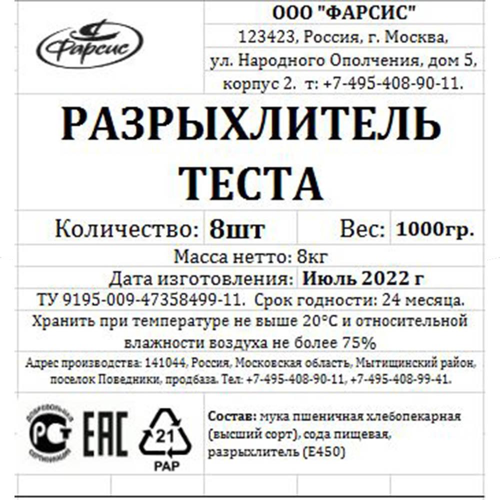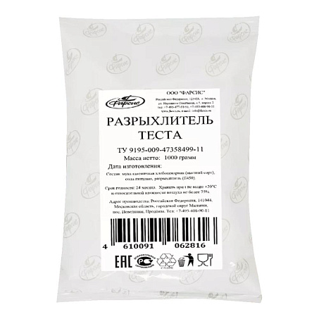 Рекомендации по приготовлению: Способ применения: на 500 г муки 8-10 г разрыхлителя.