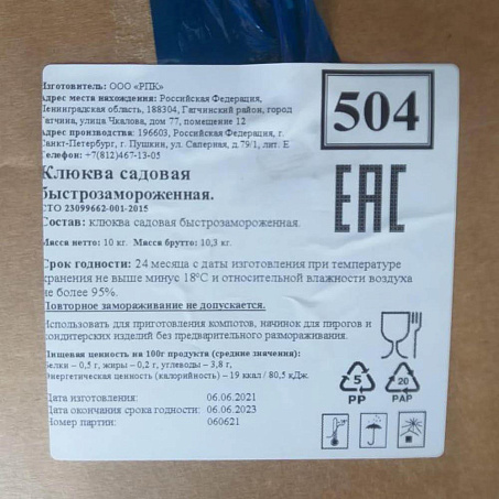 Клюква садовая быстрозамороженная.