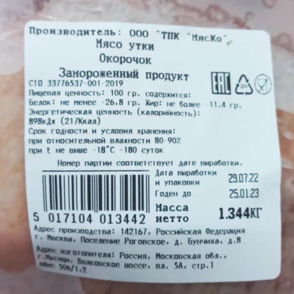 Утка окорочок с кожей ~2-3,5кг/пакет СТО МясКо Россия (КОД 56089) (-18°С)