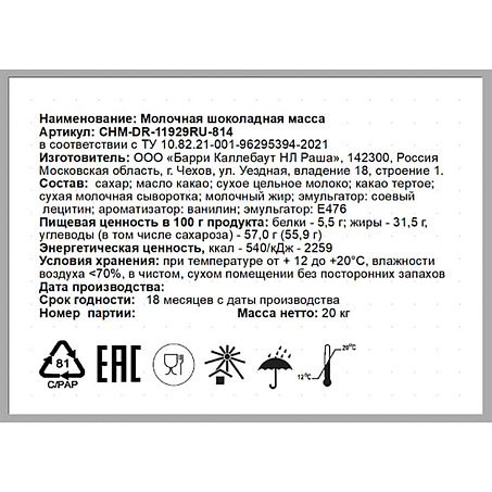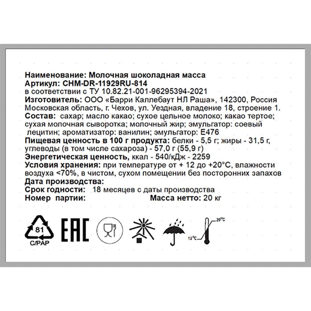 Шоколад молочный 31,5% таблетки 20кг/мешок Sicao Россия (CHM-DR-11929RU-814) (КОД 56400) (+18°С)