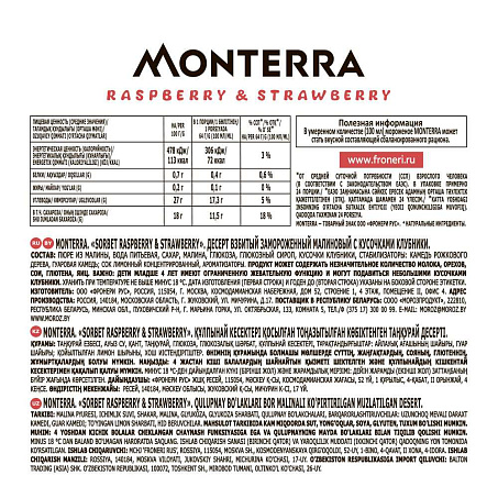 Мороженое Сорбет Малина Клубника 2,4л/1,55кг Monterra (31022748) (КОД 56479) (-18°С)