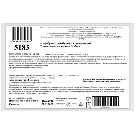Детальное описание: Полуфабрикат хлебобулочный замороженный: тесто слоеное дрожжевое «Особое»