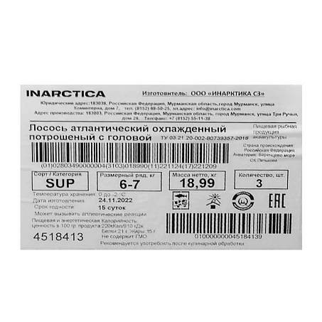 Семга целая с/г охл 6-7кг потр ~18-21кг/пен.ящ кат. SUP Инарктика СЗ Россия (КОР) (КОД 57347) (0°С)