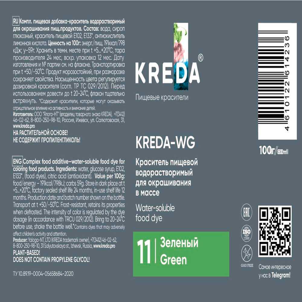 Краситель пищевой водорастровимый Зеленый 100гр/80мл пл/б Kreda™ Россия (КОД 57595) (+18°С)