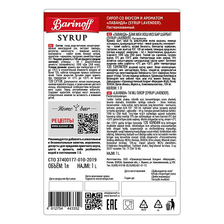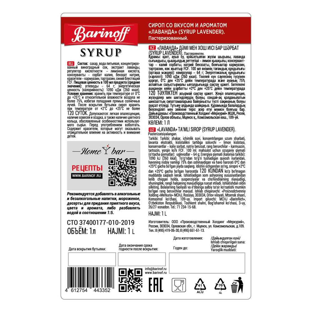 Сироп Лаванда 1л ст/б Barinoff Syrup™ Россия (КОД 59772) (+18°С)