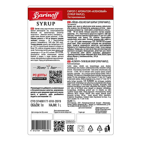 Сироп Кленовый 1л ст/б Barinoff Syrup™ Россия (КОД 60278) (+18°С)