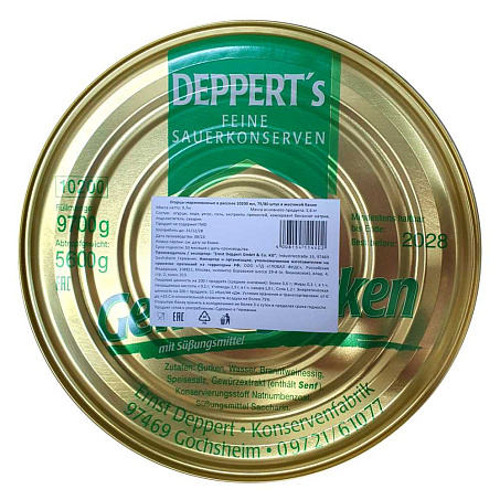 Огурцы маринованные 9-12см 10,2л/9,7кг (осн.пр.5,6кг) ж/б Ernst Deppert Германия (КОД 60837) (+18°С)