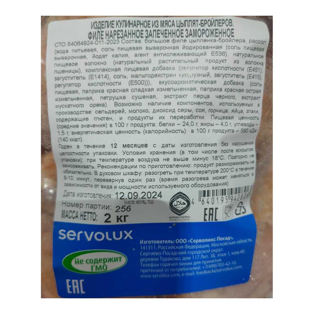 Куриное филе грудки запеченное нарезанное 2кг/пакет Серволюкс Посад Россия (КОД 60945) (-18°С)