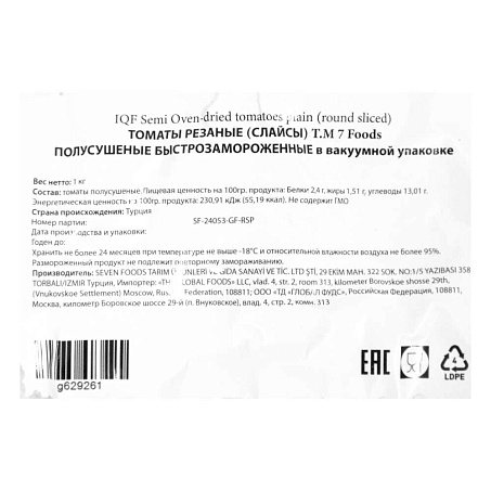 Турция SEVEN FOODS TARIM ÜRÜNLERİ VE GIDA SANAYİ VE TİC. LTD ŞTİ