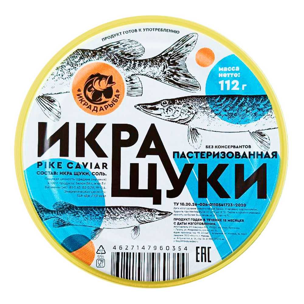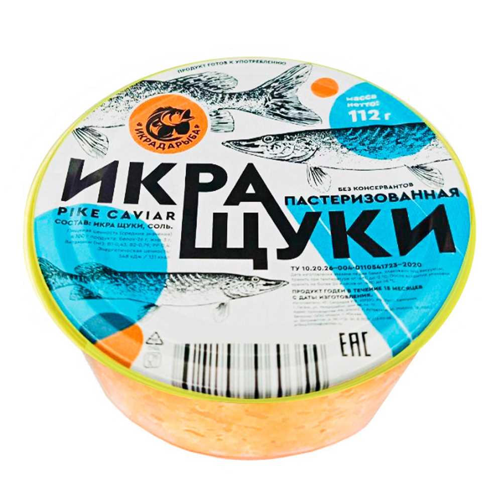 Икра щучья 112гр ст/б пастеризованная Икра да рыба™ ИП Свиридов Россия (КОД 63406) (-2/-4°С)