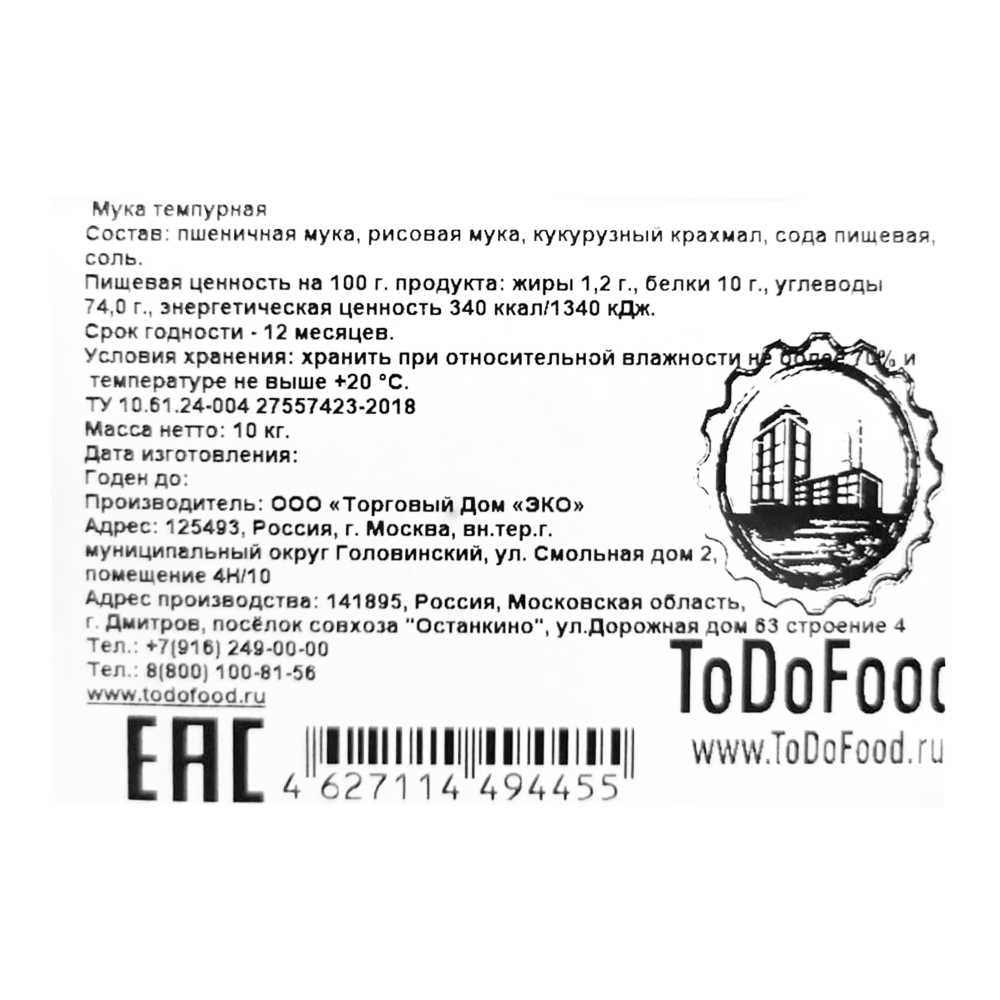 Мука Темпурная (смесь для кляра) Tokito 1кг/пакет ToDoFood™ ТД Эко Россия (КОД 63470) (+18°С)