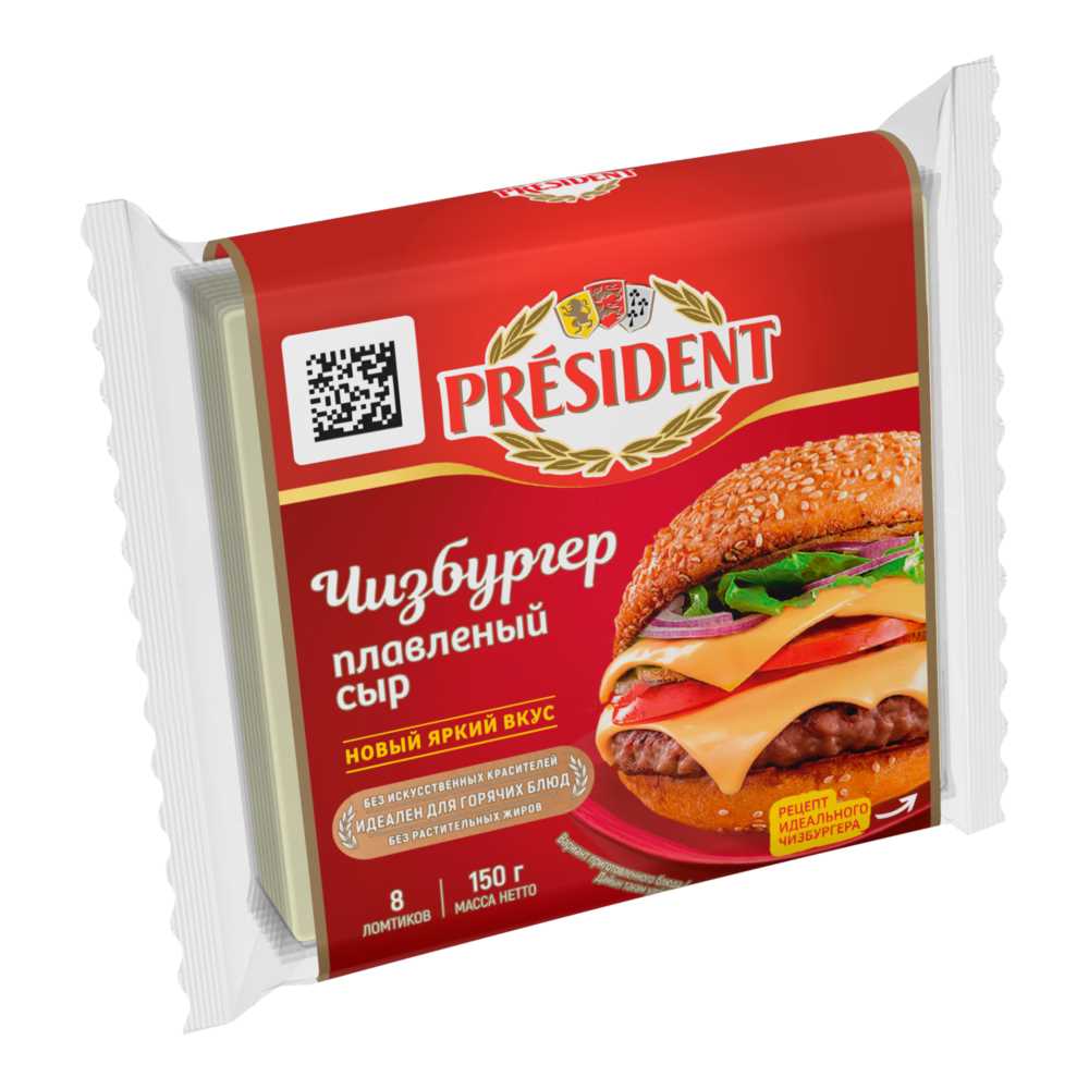 Сыр плавленый Чизбургер ломтевой 40% 150гр флоу-пак БЗМЖ President® (27349)(КОД 63993) (0°С)