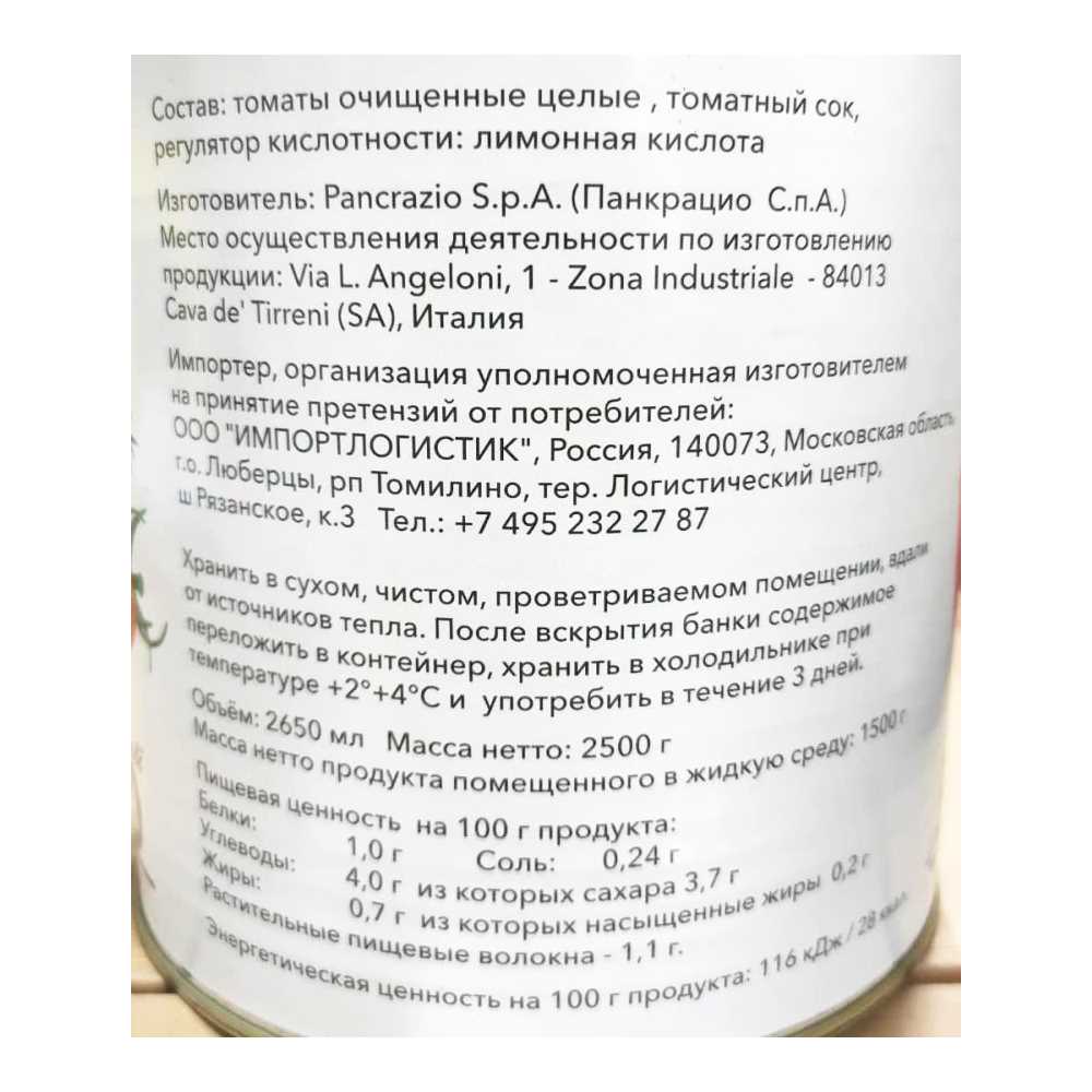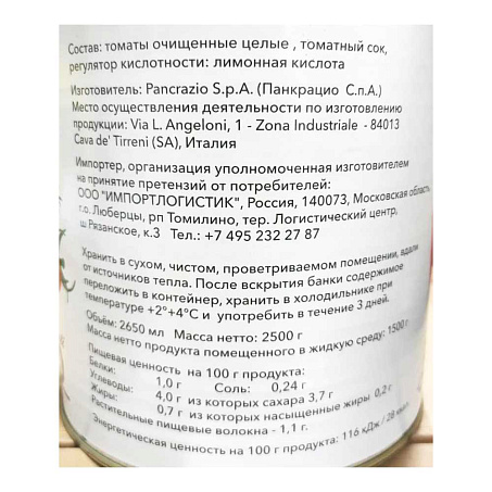 Томаты очищенные в собственном соку 2,5кг (осн.пр.1,5кг) ж/б Segreti D’Artigiano™ Италия (КОД 64340) (+18°С)