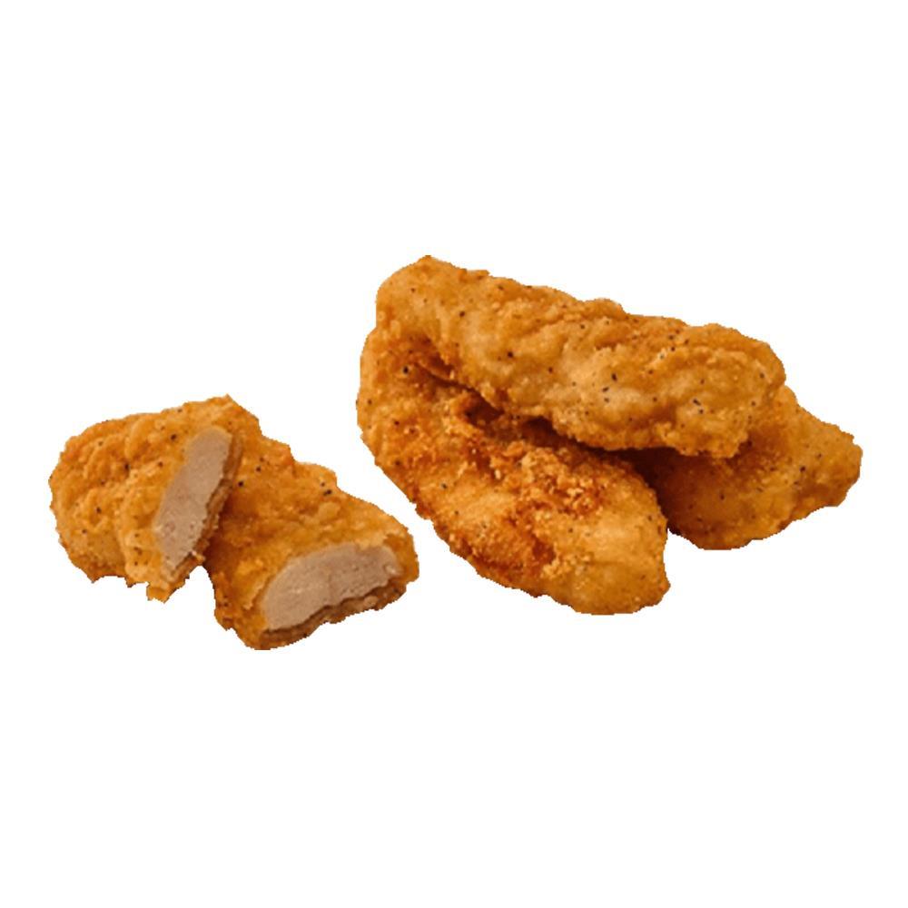 Фарш крупной рубки, приближённый к цельно-мышечным кускам, сфор-мованный в виде неровных кусочков стрипс, поверхность которых по-крыта сухарными крошками контрастного цвета. Продукт имеет види-мые включения черного перца и насечки в виде полос.