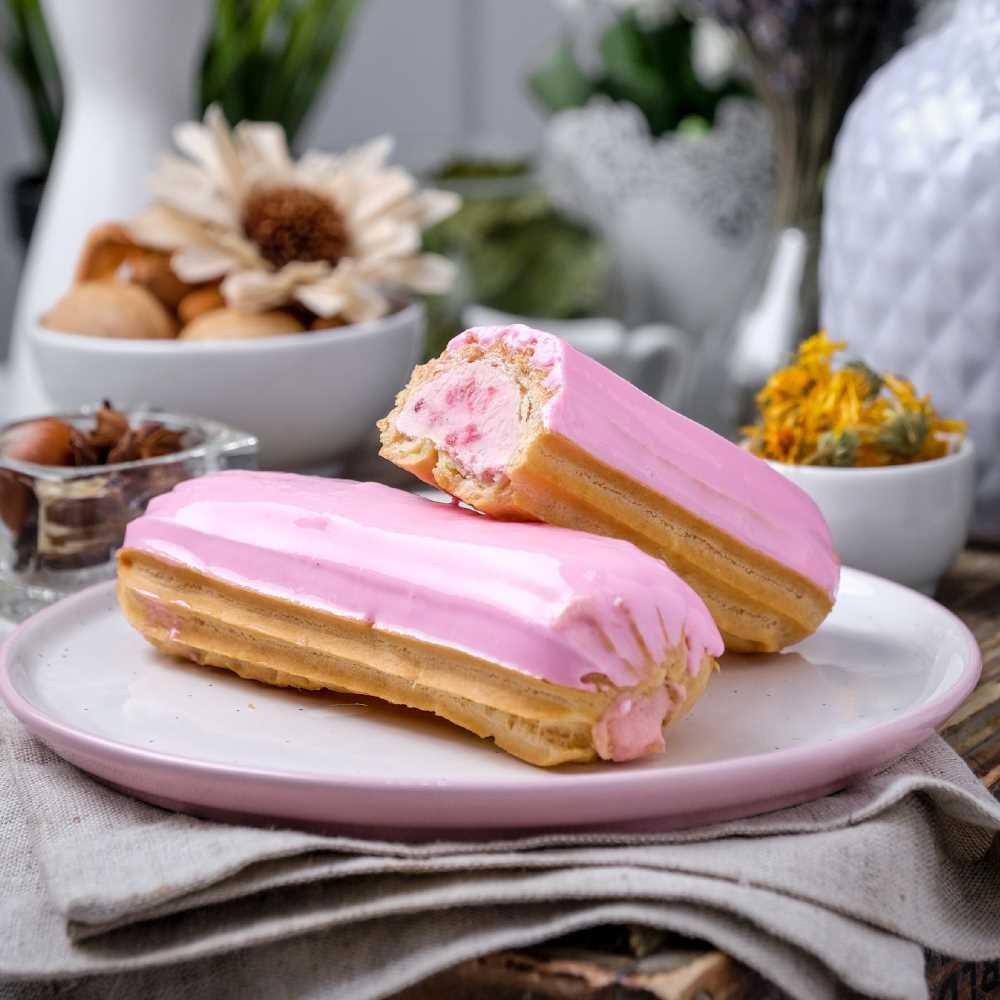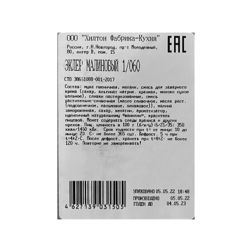 Эклер малиновый 60гр х6шт/уп х2/кор Бенье Хилтон Фабрика-кухня Россия (67) (КОР) (КОД 71505) (-18°С)