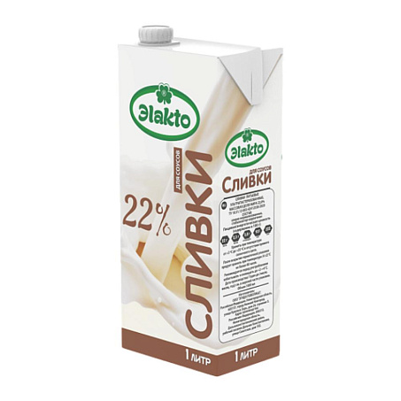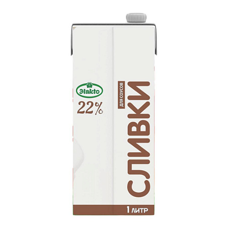 Сливки 22% 1л tetra-pak с крышкой для соуса Эlakto™ ГОСТ БЗМЖ UHT Эгида Поволжье (КОД 73291) (+18°С)