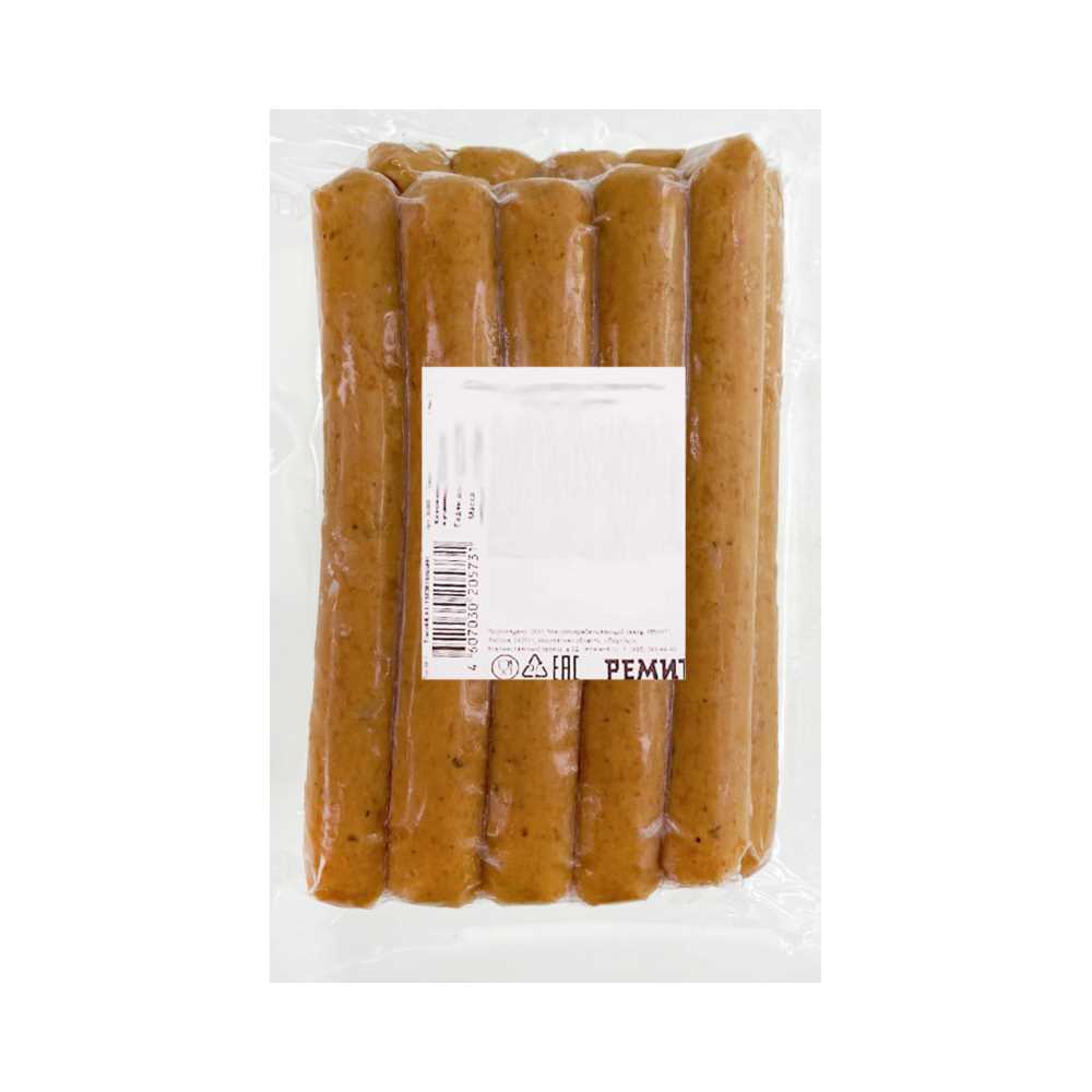 мясо куриное, шпик, вода, соевый белок, соль нитритная (соль, фиксатор окраски нитрит нартия), глюкоза, стабилизаторы (альгинат натрия, пирофосфат натрия), регулятор кислотности трифосфат натрия, уплотнитель сульфат кальция, мальтодекстрин, экстракты пряностей: перец черный, перец чили; декстроза, усилитель вкуса и аромата: глутамат натрия, пряности и травы (пряности: перец черный, перец белый, чеснок; травы: петрушка, майоран). Производится на предприятии, где также используются горчица, молоко, орехи, пшеница, сельдерей, соя и яйца. .