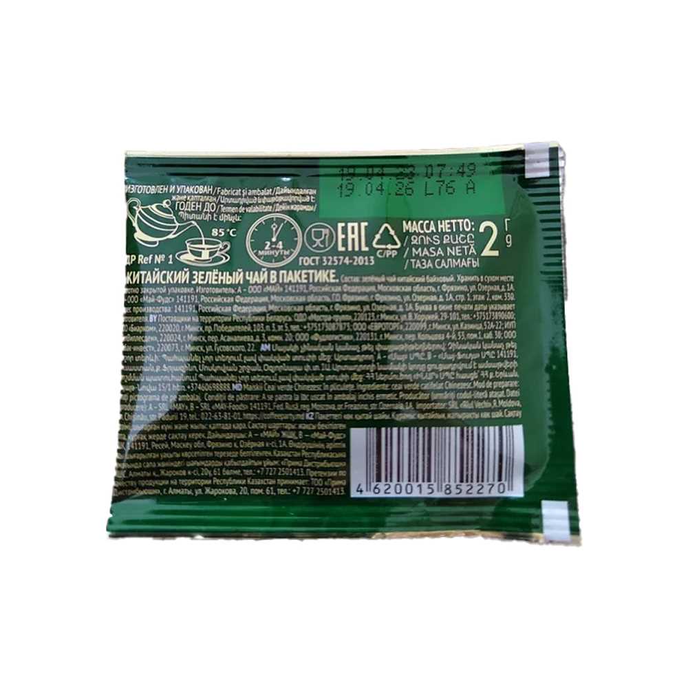 Чай зеленый пакетир китайский байховый 2гр х200шт/кор Майский™ (ПУ) (КОР) (КОД 74487) (+18°С)