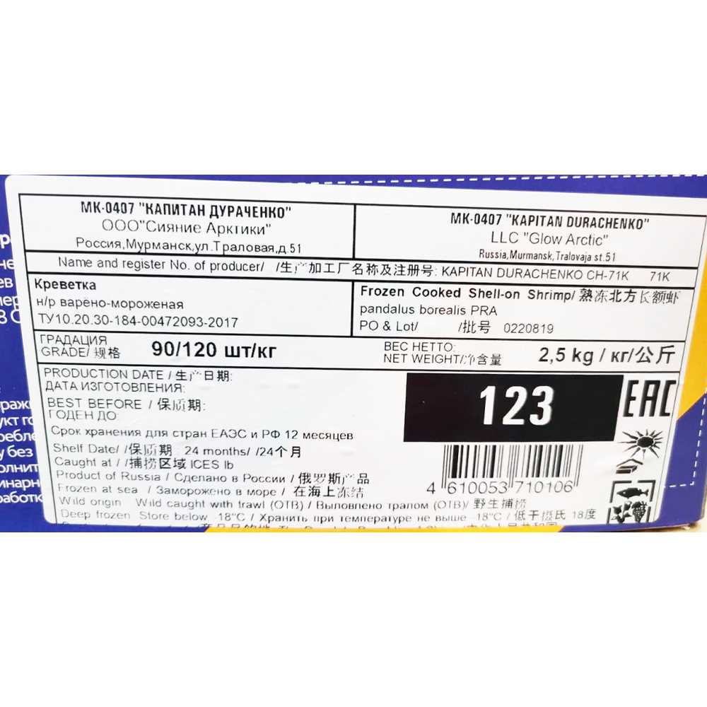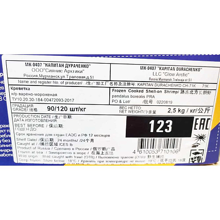 Креветки северные в панцире в/м с/г 90/120 2,5кг/кор Сияние арктики (КОР) (КОД 38609) (-18°С)