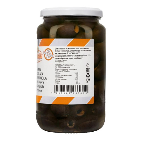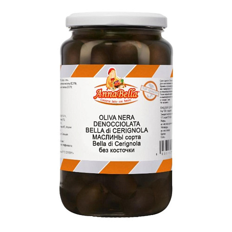 Маслины б/к Белла Чериньола 550гр/580мл (осн.пр.300гр) ст/б Annabella™ Италия (КОД 39176) (+18°С)