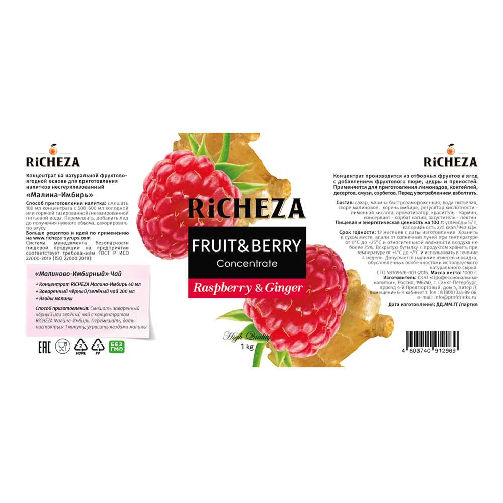 Концентрат на фруктовой основе Малина-Имбирь 1кг пл/бут Richeza™ Профессиональные напитки (КОД 39302) (+18°С)