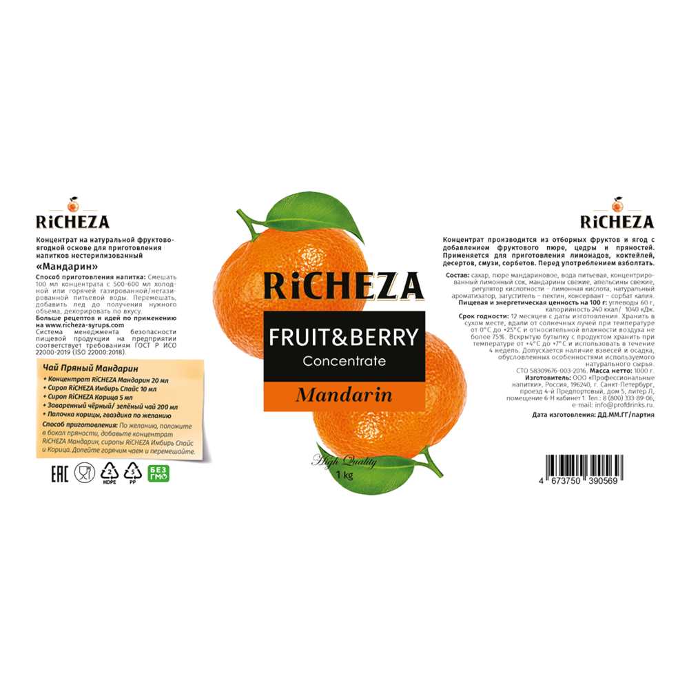 Концентрат на фруктовой основе Мандарин 1кг пл/бут Richeza™ Профессиональные напитки (КОД 39306) (+18°С)