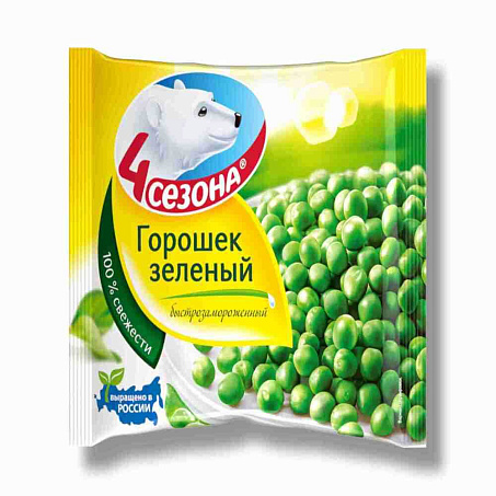 Горошек зеленый с/м 400гр/пакет 4 Сезона ™ ХК Западный Россия (КОД 39419) (-18°С)