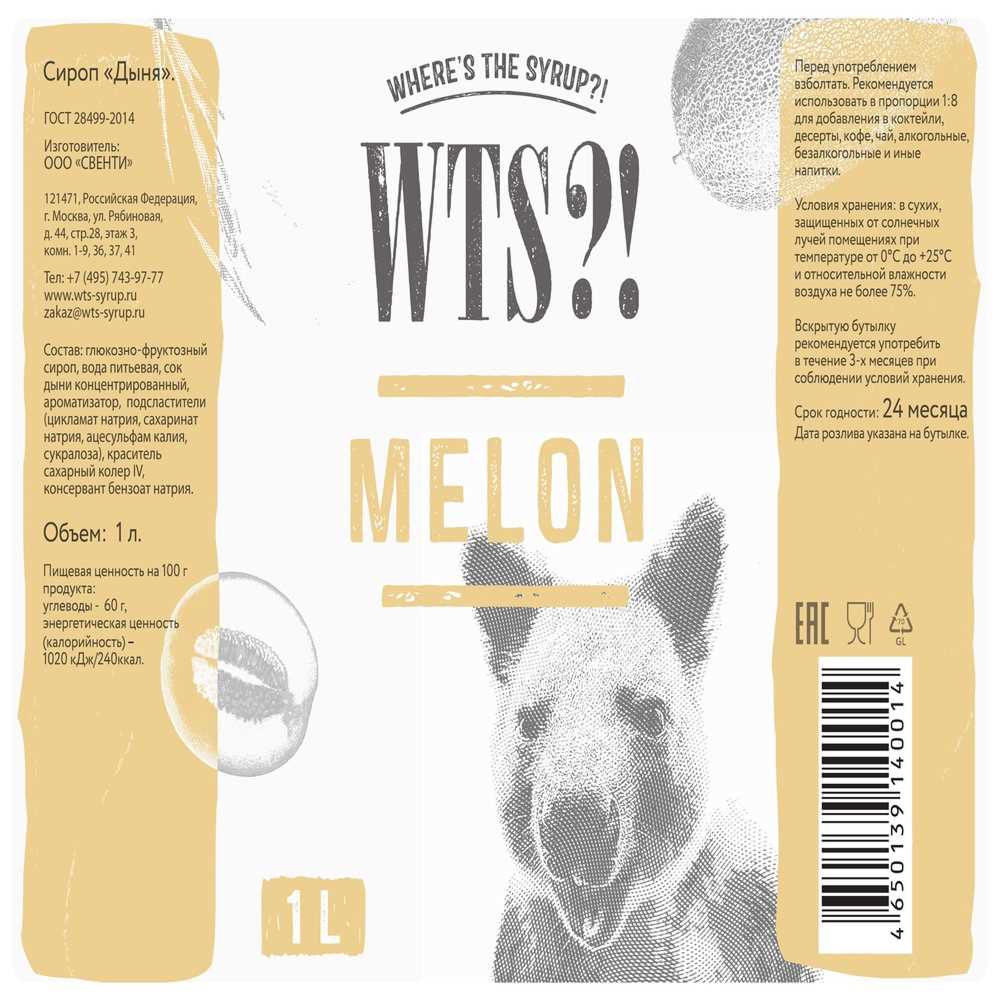 Сироп Дыня 1л ст/бут WTS?™ Свенти Россия (КОД 39581) (+18°С)