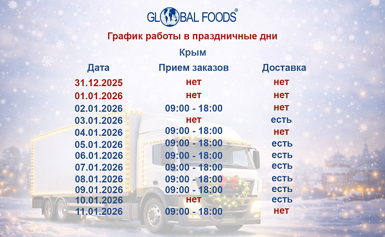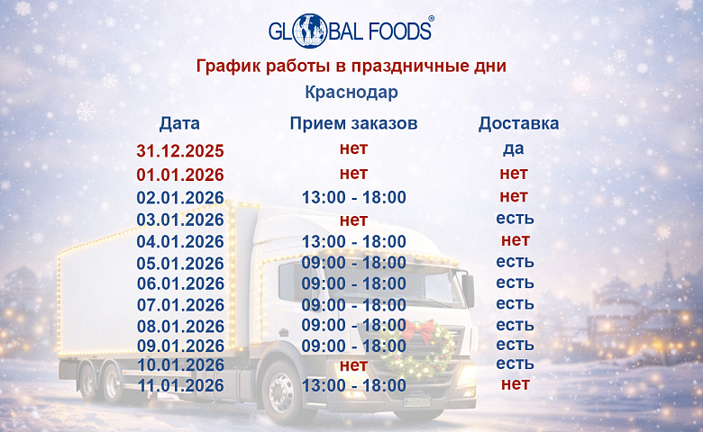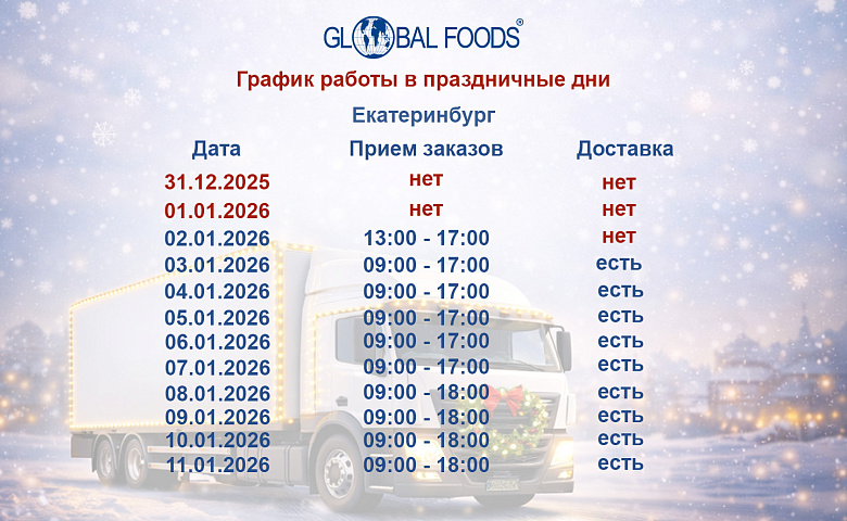 Благодарим вас за сотрудничество и доверие. С уважением, Команда Global Foods